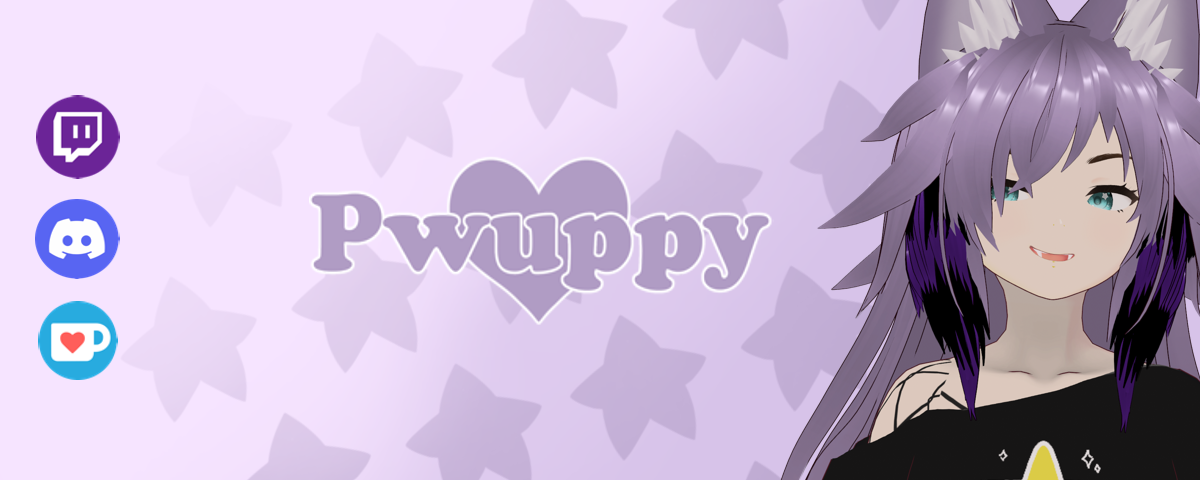 Hi There! My name is Pwuppy! I'm a Scene Queen VTuber with a love for everything Kawaii and Comfy! I love to play all different kinds of games on stream, but our favorites so far have been Final Fantasy XIV Online and Spiritfarer. I also do a bit of art on stream sometimes.I am always looking for new games to play, so please feel free to join our Discord server and suggest something for us to play!Art by @AppleKatten on Twitter